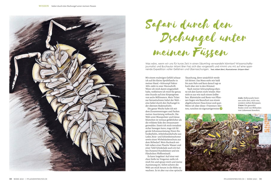 Safari durch den Boden-Dschungel Im Gartenmagazin «Der Pflanzenfreund» sind unsere Illustrationen von Bodentieren zusammen mit unserem Text zu einer Safari durch die abenteuerliche Welt des Bodens erschienen. tagPlaceholderTags: